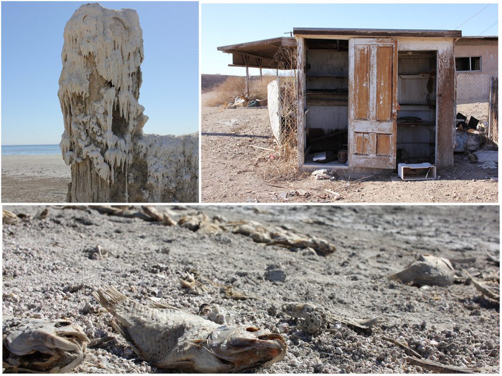 How do you handle such a large amount of water with no outlet? You shut it off at the source. Eventually, the canal supplying fresh water to the Salton Sea was cut off. Farms utilized the water and the surrounding geography sent it right back to where it came. This created problems that would compound for decades. Fertilizers, pesticides, and chemicals found their way in. And because its waters never discharge and just seep into the ground or evaporate, the salinity level became high and kept rising as the years rolled on. Numerous health hazards and warnings were issued. Due to rising temperatures, large parts of the lake dried up, leading to dust storms. Tourism followed shortly thereafter. What was once the next gem of the west became one of the greatest environmental failures in California’s history.