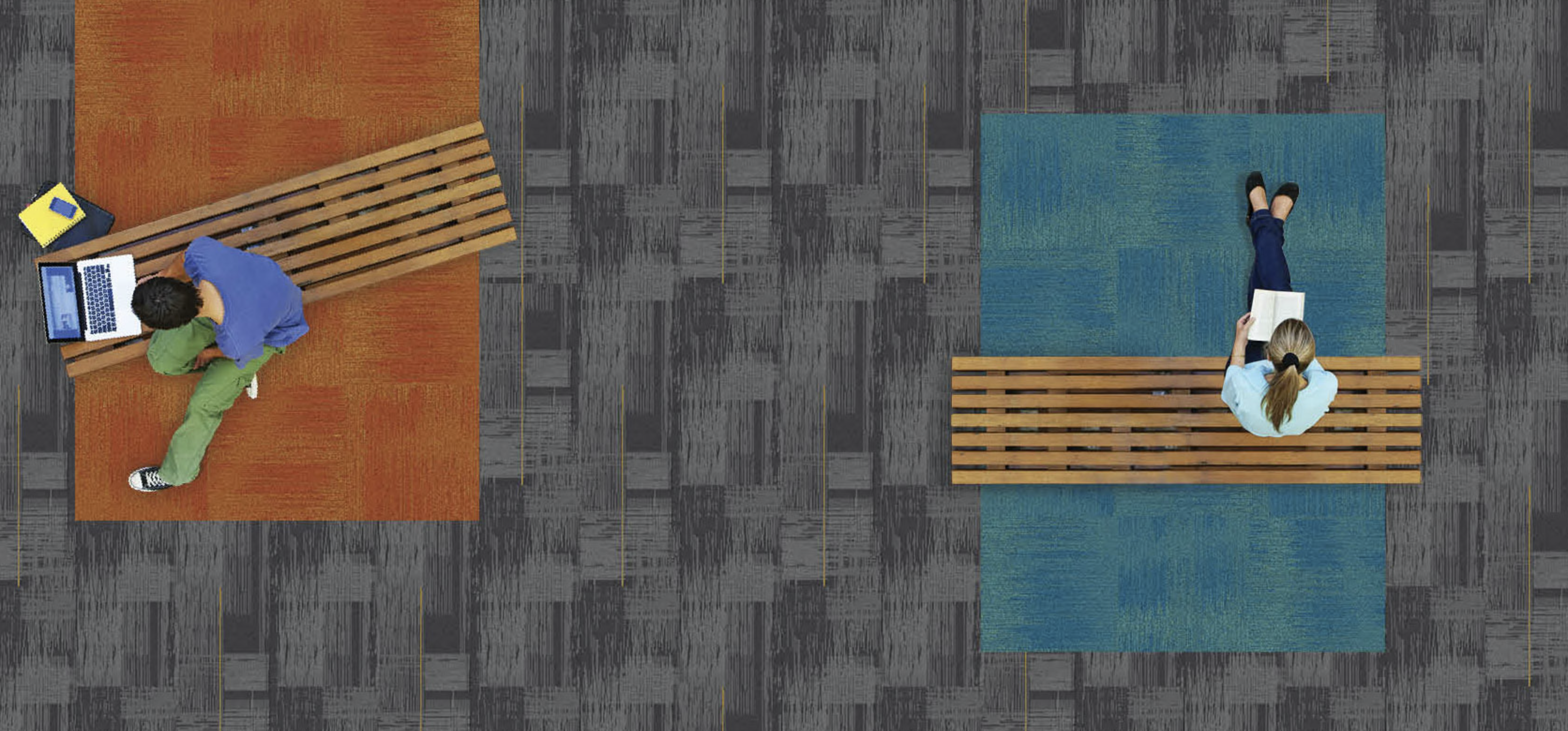To create appropriate social distance without sacrificing aesthetic, designers can combine several carpet patterns and products, colors, and even textures to guide passage or indicate separate learning or social spaces throughout a school’s buildings – cueing circulation and wayfinding and also marking zones for safety. For example, using products and color to designate spaces throughout a classroom could mean that a bright blue area is the teacher’s space and students’ desks sit on orange squares, or two different colors/patterns can symbolize two different sides of a hallway. The bottom-line is, schools are not limited in design options just because they need to adhere to social distancing and other health and safety guidelines.